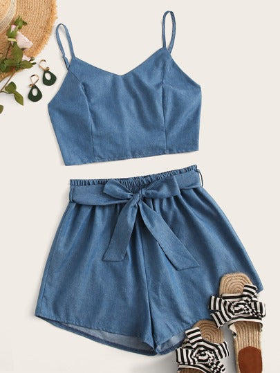 طقم مكون من قطعتين من قماش الدنيم بمقاسات كبيرة